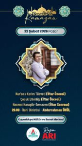 22 Şubat 2026 Pazar günü Kapadokya Kültür ve Sanat Merkezinde düzenlenecek etkinliklerle iftar sonrasında Nevşehir halkı, Ramazan ayının manevi iklimine uygun keyifli anlar yaşayacak.