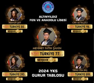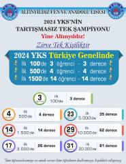 16.07.2024 tarihinde ÖSYM tarafından açıklanan YKS resmî sonuçlarına göre Altınyıldız Koleji Fen ve Anadolu Lisesi öğrencileri: