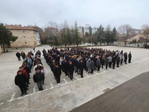 Kahramanmaraş merkezli 6 Şubat 2023 depremlerinin üçüncü yıl dönümü dolayısıyla, Millî Eğitim Bakanımız Sayın Yusuf Tekin imzasıyla illere gönderilen yazı doğrultusunda ilimiz genelindeki tüm ilköğretim ve ortaöğretim kurumlarında ilk ders öncesinde saygı duruşunda bulunuldu.