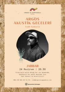 Kendine özgü vokal tarzı ve özgün yorumu ile müzik severlerin kalbine dokunan Jabbar, Argos in Cappadocia’nın Vadi Sahnesi’nde hem kendi besteleri hem de yeniden yorumladığı sevilen şarkıları ile müzikseverlere 24 Haziran’da unutulmaz bir konser serisinin başlangıcına imza atmaya hazırlanıyor.