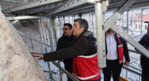 Aslanbay, Göreme’de bulunan peribacasında yürütülen güçlendirme ve restorasyon çalışmalarını yerinde inceledi