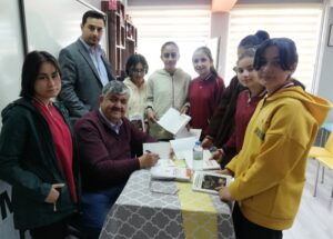 Yazar Aytekin söyleşi sonrasında öğrencilerin okudukları iki kitapla ilgili sorularını cevapladı. Faha sonra da öğrencilere kitapları imzaladı.