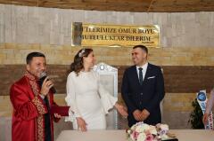 Nevşehir Belediyesi Nikah Dairesinde gerçekleşen nikâh töreninde genç çiftin nikâh şahitliklerini arkadaşları yaptı. Çiftin ailesi ve sevenlerinin huzurunda nikâhlarını kıyan Başkan Rasim Arı, Esma Gizem ve Ali Erkan çiftini tebrik etti.