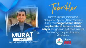 Türkiye’nin ulusal ve uluslararası turizm pazarında markalaşması için Kültür ve Turizm Bakanlığı’nca 2019 yılında kurulan ve turizm sektörü temsilcilerinin de yönetiminde yer aldığı Turizm Tanıtım ve Geliştirme Ajansı TGA’da seçim yapıldı. Nevşehir Belediye Başkanı Rasim Arı, Kapadokya’nın ilk TGA üyesi olan ve Yönetim Kurulu üyeliğine seçilen Murat Yavuz’u tebrik ederek başarılar diledi.