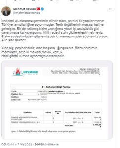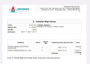 Savran, yaptığı yorumla birlikte söz konusu afiş asma hizmeti için Nevşehir Belediyesi’ne yatırılan tutarın dekontunu da paylaştı.