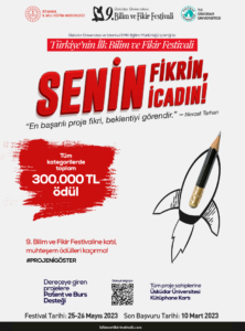 İstanbul İl Milli Eğitim Müdürlüğü ve Üsküdar Üniversitesi iş birliği ile lise öğrencilerini fikir ve proje üretmeye teşvik etmek amacıyla düzenlenen 9. Bilim ve Fikir Festivali, 25-26 Mayıs 2023 tarihlerinde Üsküdar Üniversitesi Çarşı Yerleşkesinde gerçekleştirilecek. Bu yıl, “Senin Fikrin Senin İcadın” sloganıyla gerçekleşecek festivalde tüm kategorilerde toplam 300 bin TL’lik ödül sahiplerini bulacak. “Türkiye’nin ilk bilim ve fikir festivali” niteliğindeki festivale katılmak isteyen öğrenciler, 10 Mart 2023’e kadar başvuruda bulunabilecek.