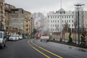 Nevşehir Belediyesi ekipleri koronavirüs önlemleri kapsamında cadde ve sokakları dezenfekte ediyor.