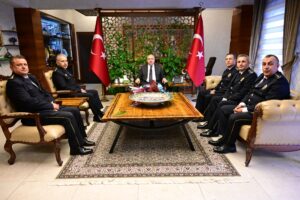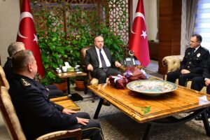 Valimiz Ali Fidan, kabul dolayısıyla İl Emniyet Müdürü Serkan Karaman ve beraberindeki personele teşekkür ederek, vatandaşlarımızın huzur ve esenliği için mesai mefhumu gözetmeksizin fedakârca görev yapan tüm emniyet personelinin Polis Haftası’nı kutladı.