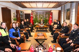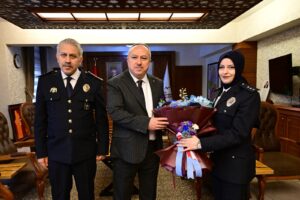 Valimiz Sayın Ali Fidan, Türk Polis Teşkilatının 181’inci kuruluş yıl dönümü ve 10 Nisan Polis Günü dolayısıyla İl Emniyet Müdürü Serkan Karaman ile beraberindeki İl Emniyet Müdürlüğü personelini makamında kabul etti.