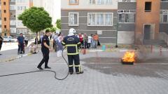 Nevşehir Belediyesi İtfaiyesi, Mehmet Akif Ersoy Mahallesi TOKİ Konutları’ndaki mahalle sakinlerine ve blok görevlilerine yangınla mücadele eğitimi verdi.