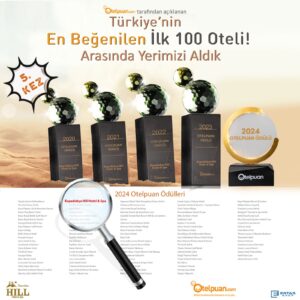 Sunulan hizmetler çevresinde büyük beğeni toplayan otelin Genel Müdürü Mustafa Ertaş, “Beş yıl üst üste Otelpuan tarafından yapılan değerlendirmede, misafirlerimizin memnuniyetini en üst seviyede tutarak ilk 100 otel arasında yer almanın gururunu yaşayarak bu ödülü kazandık.” açıklamasını yaptı.