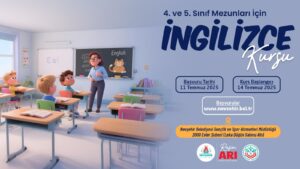 - Sınıf İngilizce kursu 16 Temmuz 2025 tarihinde başlayacak ve 28 Ağustos 2025 tarihinde tamamlanacak. Kurs Çarşamba ve Perşembe günleri 13.00 – 15.00 saatleri arasında yapılacak.