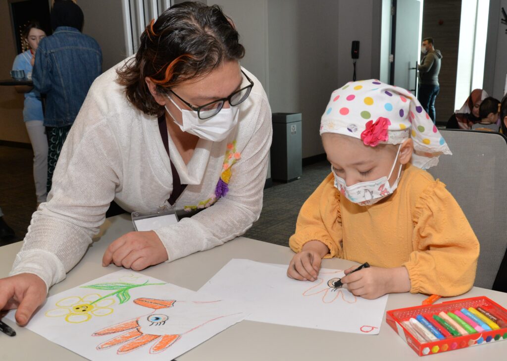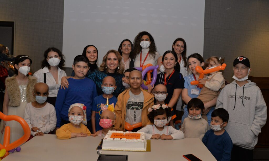 Lösemi hastalığı ile mücadele eden yaklaşık 40 çocuk, doktorları ve tedavilerini yürüten ekiple birlikte eğlenceli saatler geçirdi. Lösemili çocukların uymak durumunda olduğu nötropenik diyete uygun olarak hazırlanan turuncu nötropenik pastanın kesildiği etkinlikte, çocuklar ayrıca resim atölyesinde hayal dünyalarını turuncuya boyadı.