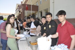 Nevşehir 15 Temmuz Anadolu Lisesi’nde mezuniyet töreni coşkulu bir pilav şenliği ve kep atma töreni ile kutlandı. Öğrenciler, öğretmenler ve velilerin katılımıyla gerçekleşen etkinlik, okul bahçesinde düzenlendi.