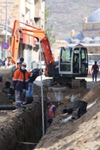 Öğretmenevi ile Kurşunlu Cami arasındaki Cami Kebir Caddesi’nde yar alan Kasaplar Çarşısı’ndaki parke taşların sökümünü tamamlayan Nevşehir Belediyesi Fen İşleri Müdürlüğü ekipleri, bu bölgede ikamet eden vatandaşlar ve esnaflara daha sağlıklı içme suyu ulaştırmak ve sorunsuz bir altyapı ağını oluşturmak için içme suyu hattı ve kanalizasyon hattı yenileme çalışmalarına başladı.