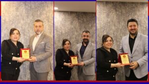 Nevşehir Milletvekilleri Süleyman Özgün ve Emre Çalışkan ve Karapınar Belediye Başkanı Yasin Güneş’e Nevşehir için çalışmalarından dolayı başkan Ayşe Paslanmaz tarafından plaket takdim edildi