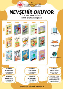 İl Millî Eğitim Müdürlüğü bünyesinde bulunan resmi-özel tüm okullarda öğrenim gören 2, 3, 4, 5, 6 ve 7. sınıf öğrenciler için projede belirlenen takvim çerçevesinde; “Nevşehir Okuyor” projesi kapsamında “Kitap Okuma Yarışması” düzenlenecektir. Her sınıf kademesi için 5 kitap belirlenmiş olup ilgili tarihlerde sınavlar online yapılacaktır. Sınav sonucunda dereceye giren öğrenciler ödüllendirilecektir. Yarışma ile ilgili detaylı bilgilere kılavuzdan ulaşabilirsiniz.
