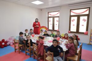 Çocuk oyun alanında çocuk gelişimci personeli ile birlikte 4-8 yaş arası çocuklara yönelik yapılan kutlama etkinliklerine 14 çocuk katılırken etkinlik “Cumhuriyet Ruhunu Yaşatmak” mottosuyla gerçekleştirildi.