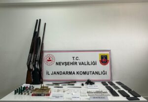 | Nevşehir İl Jandarma Komutanlığı olarak vatandaşlarımızın huzur ve güven içerisinde yaşamlarını idame ettirmelerini temin etmek maksadıyla zehir tacirlerine yönelik mücadele faaliyetlerimize aralıksız olarak devam edilmektedir. Narkotik Suçlarla Mücadele kapsamında, Nevşehir Cumhuriyet Başsavcılığı koordinesinde Nevşehir İl Jandarma Komutanlığı ekipleri tarafından 3 ay süre ile fiziki ve teknik takipli çalışmalar başlatılmıştır. Elde edilen bilgiler doğrultusunda 16 Şubat 2026 günü (18) şahsa ait (20) adreste icra edilen operasyon faaliyetinde şüpheli şahıslar gözaltına alınmıştır. Faaliyet süresince; ortaya çıkartılan (38) ayrı narkotik olayda toplam (93) şahsa işlem yapılmış işlem yapılan (4) şüpheli şahıs adli makamlar tarafından tutuklanarak Nevşehir E Tipi Kapalı Cezaevine sevk edilmiştir. İcra edilen operasyonlarda; TCK (188 ), TCK (191), 6136 S.K.M. ve 2521 S.K.M. suçları kapsamında olduğu değerlendirilen; ü 190.7 G. Metamfetamin, ü 203.8 G. Bonzai ü 75.8 G. Kubar Esrar, ü 790 Adet Sentetik Ecza hapı ü 3 Adet uyuşturucu kullanma aparatı, ü 100 Adet 9 mm tabanca fişeği, ü 143 Adet 7.65 mm tabanca fişeği, ü 1 Adet 5.56 mm fişek, ü 1 Adet boş şarjör, ü 6 Adet bıçak, ü 3 Adet ruhsatsız av tüfeği, ü 1 Adet kurusıkı tabanca ü 5 Adet Cep Telefonu, ü 5 Adet SIM Kart, ü 22 Adet 12 Cal. Fişek ele geçirilmiştir. Nevşehir İl Jandarma Komutanlığı halkımızın huzur ve güveni için aralıksız çalışmalarına devam etmektedir. Kamuoyuna saygıyla duyurulur. NEVŞEHİR İL JANDARMA KOMUTANLIĞI