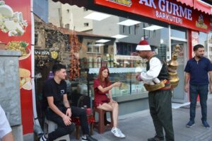 Hava sıcaklıklarının Nevşehirli vatandaşları olumsuz etkilediği kentte günlük işleri sebebiyle cadde ve sokaklara çıkmak zorunda kalan ve bunaltıcı sıcaktan etkilenen esnaf ve vatandaşlara ikramda bulunmak istediklerini söyleyen Belediye Başkanı Rasim Arı “Nevşehir’de son yılların en yüksek sıcaklıklarıyla karşı karşıyayız. Bu sebepten ötürü hem sokakta yürüyen vatandaşlarımıza hem de kavurucu sıcakla boğuşan esnaflarımıza bir nebze de olsa serinlemeleri için geleneksel kıyafetler giyen görevlilerimiz tarafından limonata ikram ediyoruz. Bütün vatandaşlarımıza çok zaruri olmadıkları sürece yakıcı sıcaklara maruz kalmamak adına dışarı çıkmamalarını tavsiye ediyoruz. 01 Ağustos 2025 Cuma gününe kadar Nevşehir geneli ana arterler, ara arterler ve mahallelerimizde birim görevlilerimiz tarafından sizleri az da olsa serinletmek için limonata ikramlarımız devam edecek” diye konuştu.