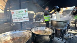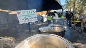 İHH’nin Gazze’de yürüttüğü sıcak yemek çalışmasının yanı sıra gıda kolisi, su ve acil insani yardım faaliyetlerini de sürdürdüğü bildirildi.