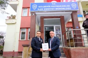 Belediye Başkanımız Erkan Çiftci, Polis Haftası dolayısıyla İlçe Emniyet Müdürlüğü’ne anlamlı bir ziyaret gerçekleştirdi. Ziyarete İlçe Kaymakamı Tolga Değirmenci, MHP İlçe Başkanı Mustafa Tosun, MHP İl Genel Meclis Üyesi Kürşat Salgıncı ve ilçe protokolü de eşlik etti. Heyet, İlçe Emniyet Müdürü Başkomiser Abdullah Akgül’ü makamında ziyaret ederek, onun nezdinde tüm emniyet teşkilatının Polis Haftası’nı kutladı. Ziyaret sırasında emniyet personeline hediyeler takdim edildi. Başkanımız Erkan Çiftci, toplumun huzur ve güvenliği için gece gündüz demeden fedakârca görev yapan emniyet mensuplarına teşekkür ederek, çalışmalarında başarılar diledi. Ziyaret, günün anısına çekilen hatıra fotoğrafı ile sona erdi.