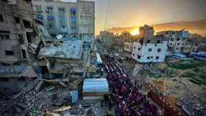 | Türk Kızılay Gazze’de Ramazan’ın İlk İftar Sofrasını Kurdu Türk Kızılay, Ramazan’ın ilk gününde Gazze’de yerinden edilen Filistinliler için sokak iftarı düzenledi; aşevi kapasitesini 60 bin kişiye çıkarırken, 21’inci İyilik Gemisi’ni Mersin Limanı’ndan bölgeye uğurladı. Ramazan ayının ilk gününde Türk Kızılay, Gazze’de yerinden edilen Filistinliler için iftar programı düzenledi. Gazze kentinin orta kesimindeki Yermuk bölgesinde kurulan sokak iftarında yüzlerce aile aynı sofrada bir araya geldi. Zorlu koşullar altında yaşam mücadelesi veren sivillere sıcak yemek ikram edilerek Ramazan’ın dayanışma ruhu paylaşıldı. Aşevi Kapasitesi 60 Bine Çıkarıldı Türk Kızılay, Gazze’de ilk günden bu yana sürdürdüğü insani yardım faaliyetlerini Ramazan ayıyla birlikte daha da genişletti. Günlük sıcak yemek kapasitesi 60 bin kişiye çıkarılırken, Ramazan boyunca toplam 1 milyon 800 bin kişilik iftarlık desteği sunulması planlanıyor. Öte yandan Türk Kızılay’ın 21’inci İyilik Gemisi, Ramazan ayının ilk gününde Mersin Limanı’ndan uğurlandı. Sevkiyat kapsamında yaklaşık 175 bin gıda kolisi ile giyim, hijyen, barınma, su ve temel yaşam malzemeleri Gazze’ye ulaştırılmak üzere yola çıktı. Türk Kızılay, Gazze’de hem acil insani yardım çalışmalarını hem de Ramazan’a özel destek programlarını eş zamanlı olarak sürdürmeye devam ediyor.