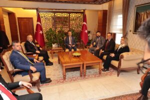 Ulaştırma ve Altyapı Bakanı Uraloğlu, öğle saatlerinde havayolu ile Nevşehir’e geldi. Buradaki karşılama töreninin ardından Bakan Uraloğlu, ilk olarak Nevşehir Valiliğini ziyaret etti. Uraloğlu, burada Nevşehir Valisi Ali Fidan, AK Parti Nevşehir Milletvekilleri Süleyman Özgün ve Emre Çalışkan, MHP Genel Başkan Yardımcısı ve Nevşehir Milletvekili Prof. Dr. Filiz Kılıç, AK Parti İl Başkanı Ali Kemikkıran, Nevşehir Belediye Başkanı Dr. Mehmet Savran ile bir süre görüştü.