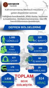 Kahramanmaraş merkezli ve 10 ilimizde yaşanan depremler nedeniyle İlimizden afet bölgelerine sağlanan, insan gücü, ekipman ve diğer tüm lojistik destekle yaralarımızı birlikte sarıyoruz.🇹🇷