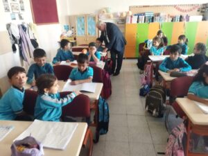 İl Millî Eğitim Müdürü Yusuf Yazıcı, okul ziyaretleri kapsamında bugün Abdülhamit Han İlkokuluna misafir oldu. Öğrencilerin dersine katılan İl Müdürü, derslerdeki başarıları ve hedefleri üzerine sohbet ederek öğrencilere tavsiyeler de bulundu.